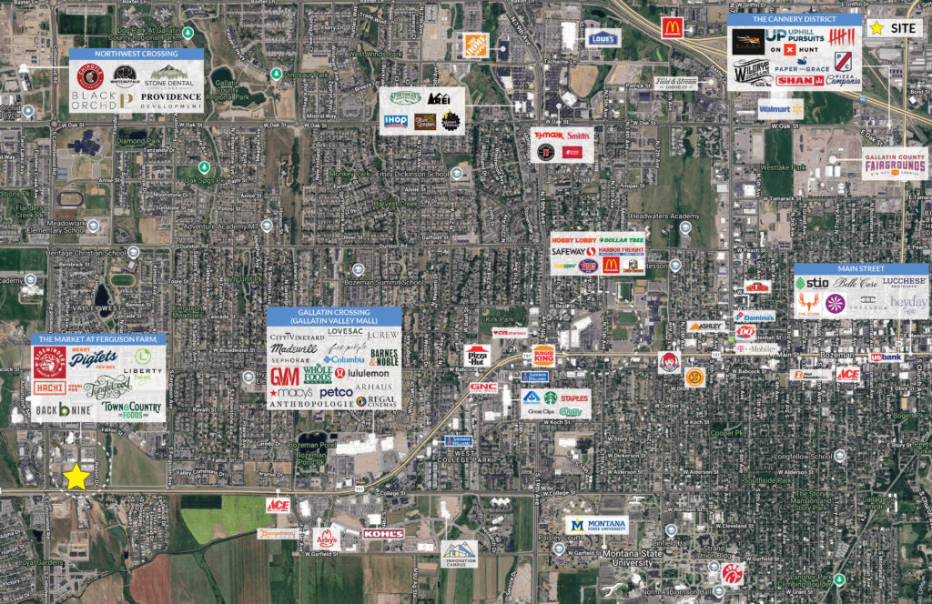 25,372 ADT. Centrally located in Bozeman’s primary growth corridor. Bozeman’s Economy is driven by a combination of technology, healthcare, education, & tourism- creating a robust retail environment. Ideal site for retailers & businesses looking for exceptional access & visibility.