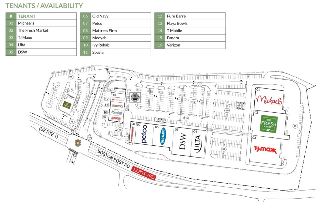 • CT Premier shoreline property – 123,000 SF anchored by Fresh Market, TJ Maxx, Ulta, Old Navy, Petco, and more