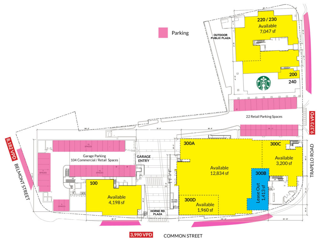 34,121 sf total retail/office space available with minimum of 454 sf and a maximum contiguous of 17,996 sf